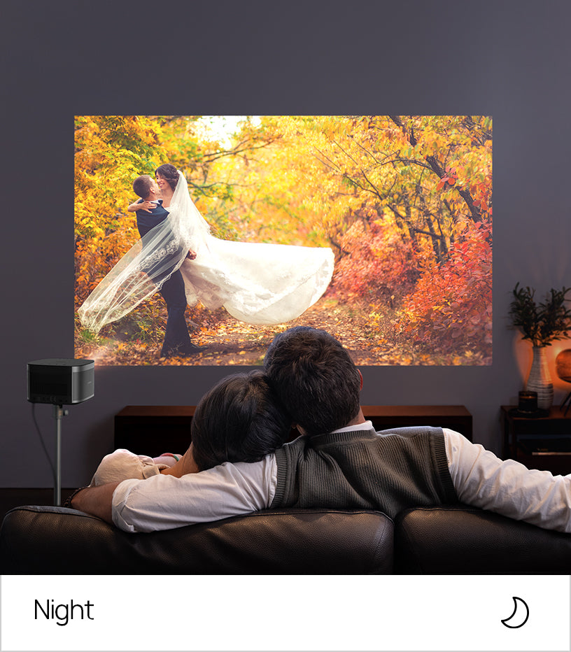 HORIZON packs a beaming bright 1500 ISO Lumens that provides stellar brightness any time of day, even in rooms with tons of ambient light.1 Enjoy sharp imagery with realistic colors without worrying about having to adjust your living space to fit your projector display.
